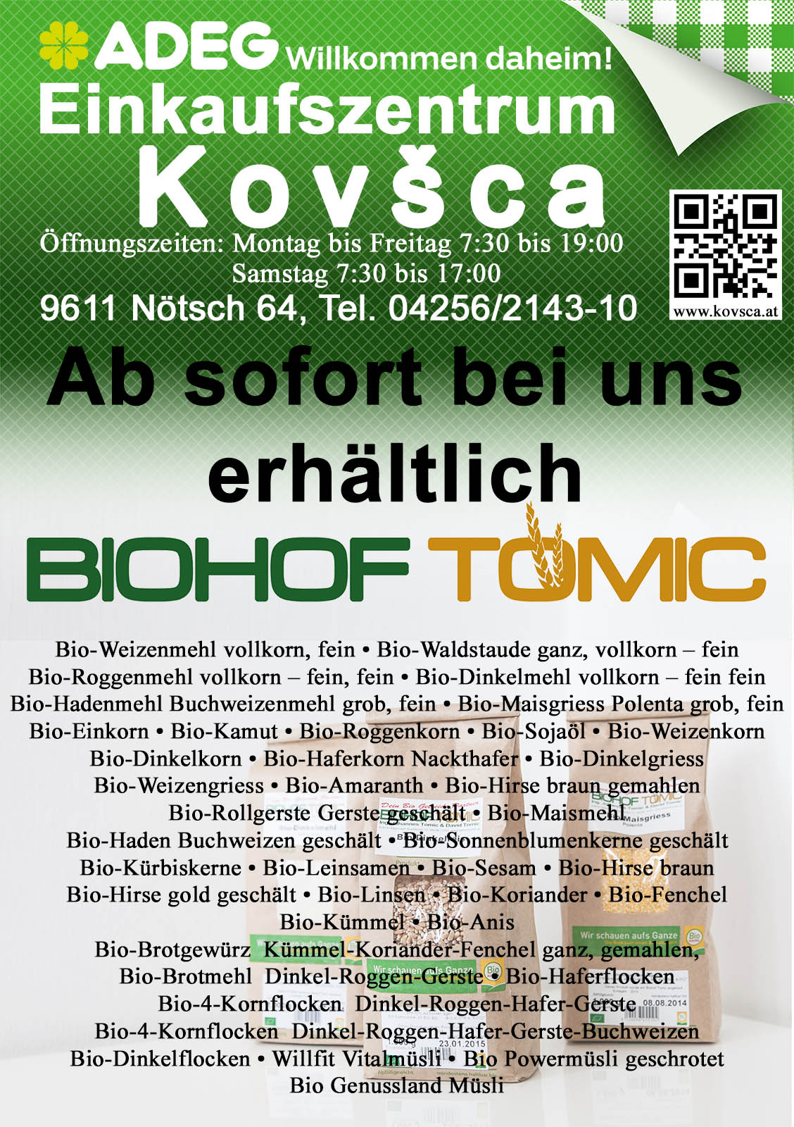 9611 Nötsch im Gailtal, Nötsch 64 04256/2143 kovsca@kovsca.at Mo-Fr: 7:30-18:30 Sa: 7:30-17:00 Baumarkt Sa: 7:30-13:00